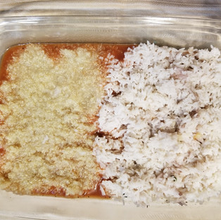 NOTE: In these pictures, I used quinoa in half of the casserole and cooked rice in the other half. Any grain can work in this recipe. Other options include pearl barley, buckwheat or millet.